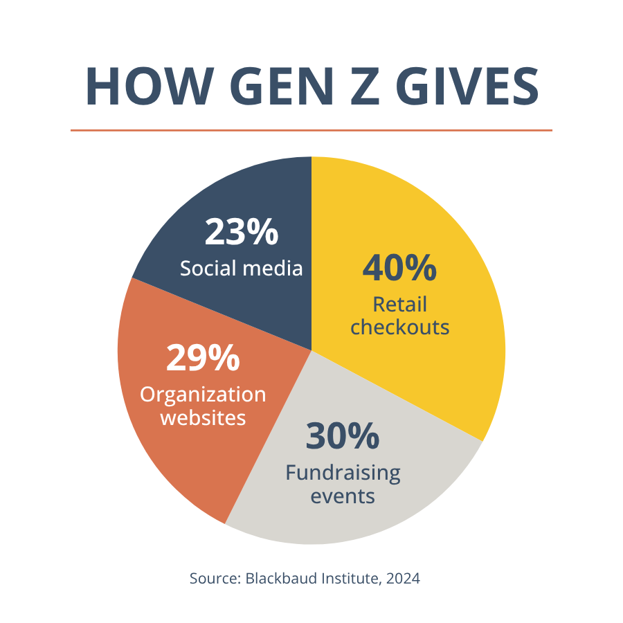 Convenience and trust drive action. Gen Z prefers donation channels like:
